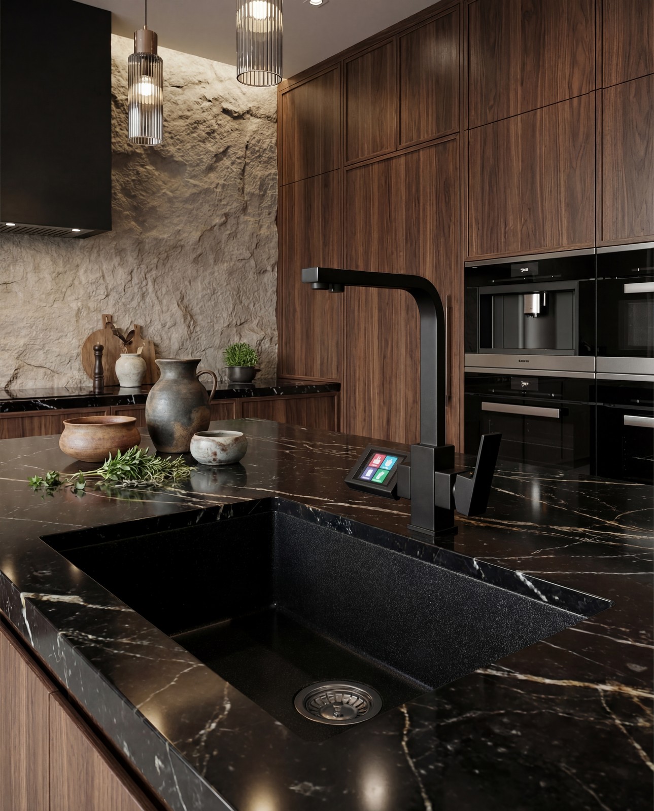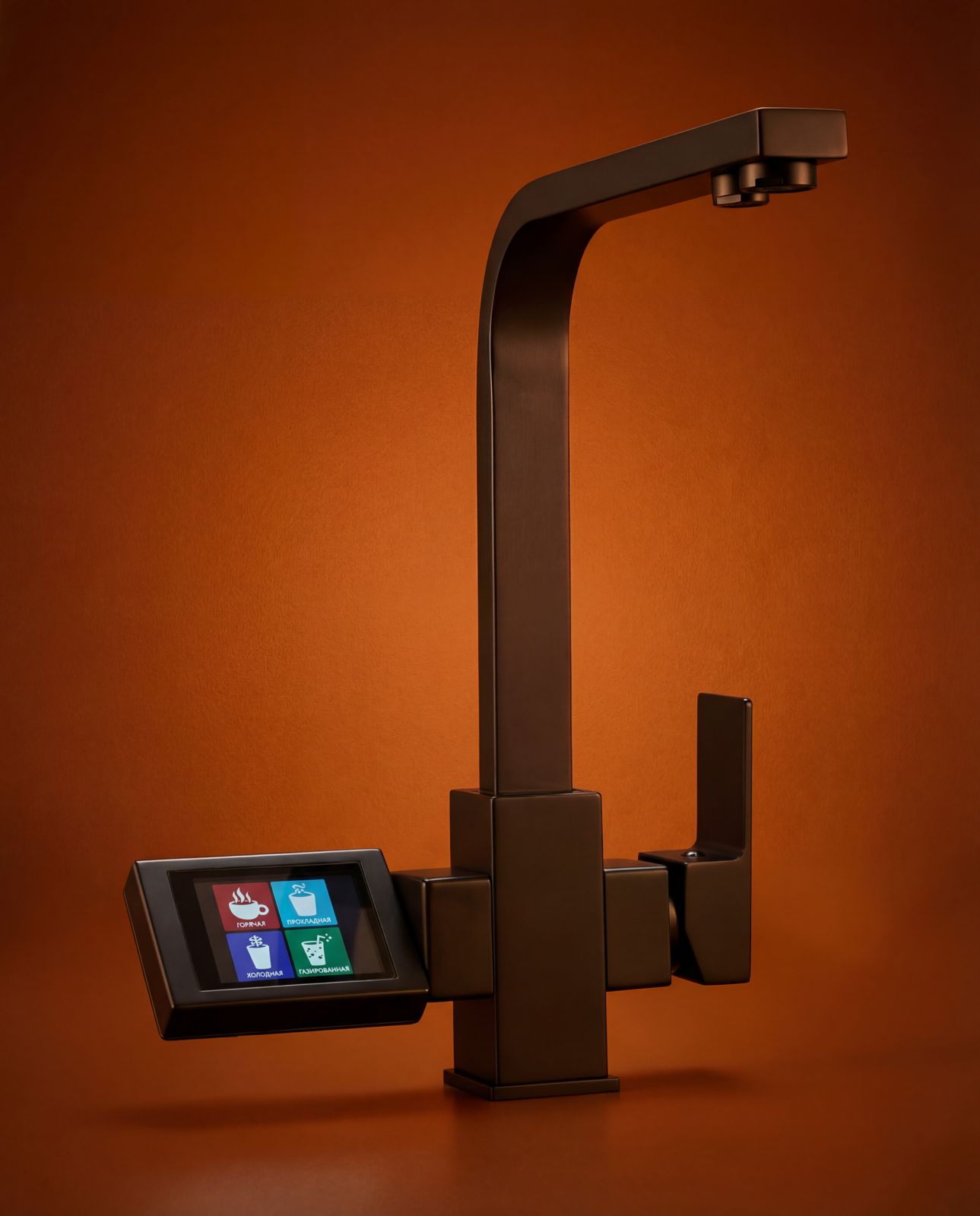 Система заменяет традиционный смеситель в раковине, объединяя в себе функции нагрева, охлаждения, газирования и многоступенчатой фильтрации, управляемые через интуитивный сенсорный интерфейс.