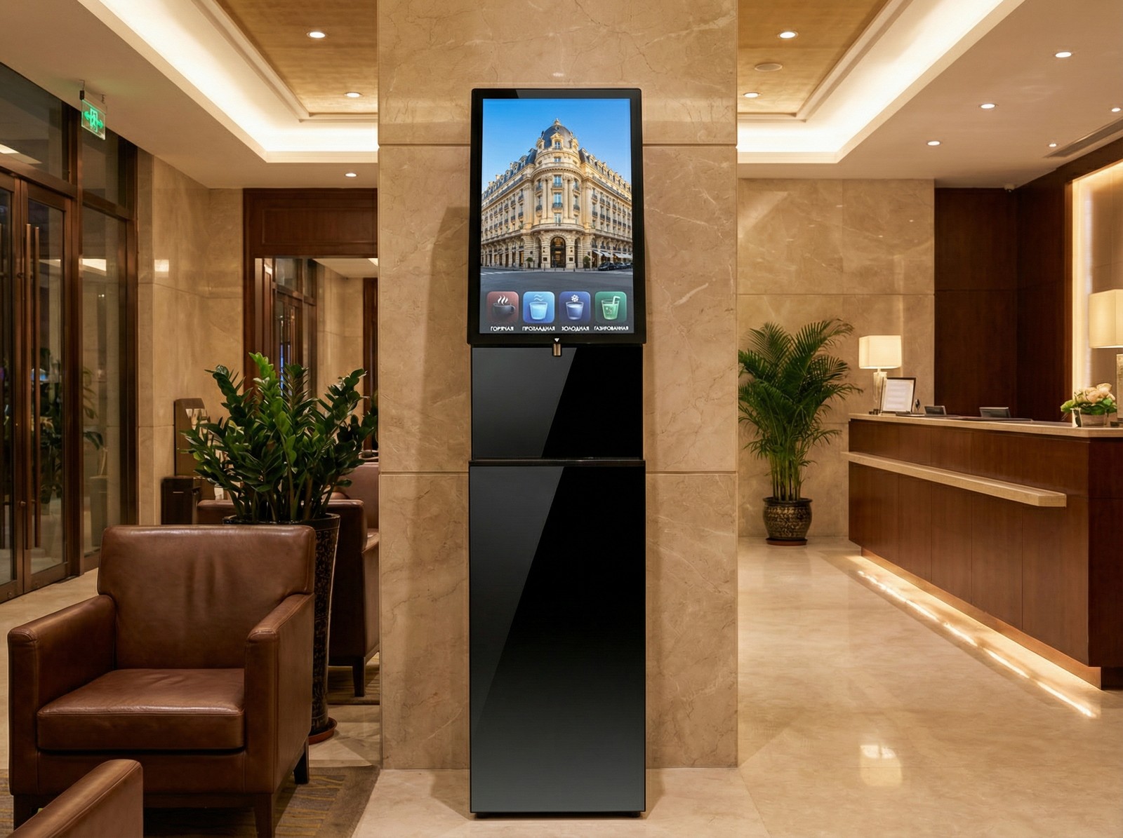 Встроенный дисплей 21,5 дюйма превращает каждое использование в момент контакта. Пока гость набирает газированную, холодную или горячую воду, вы можете показать ему рекламное сообщение, меню или важную информацию.
